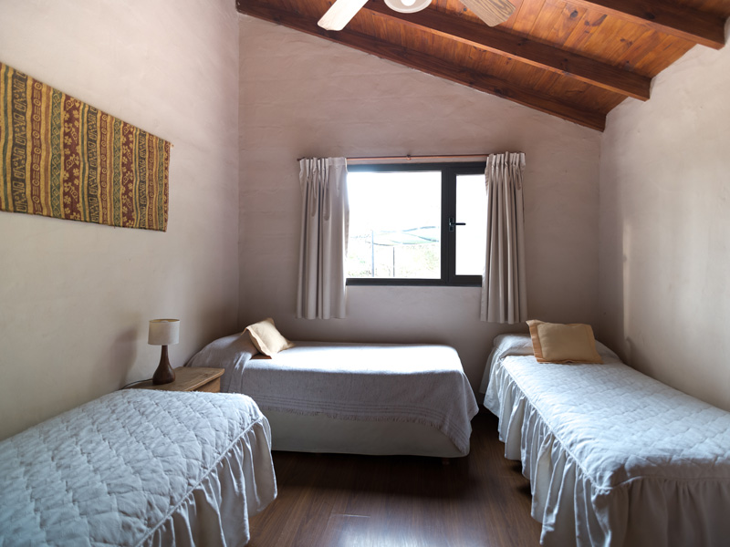Un dormitorio independiente con tres camas somiers (0,80 x 1,90 mts). Ventilador de techo.